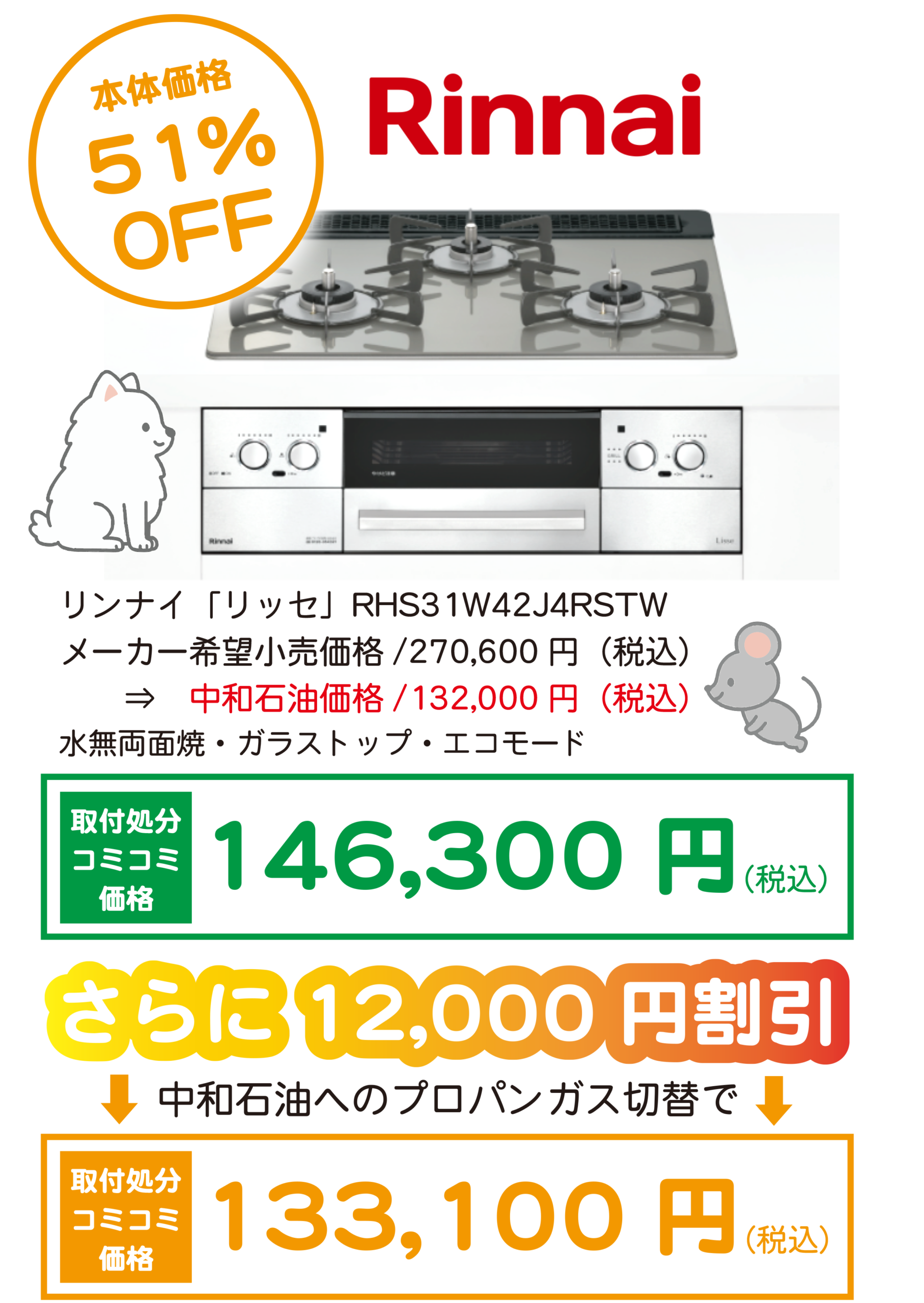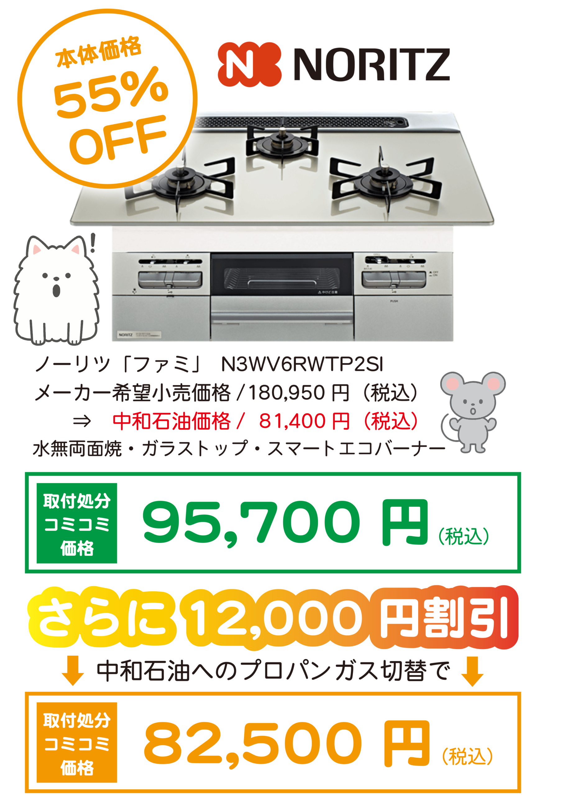 ・ビルトインコンロのお取替には弊社スタッフによる事前調査が必要です。