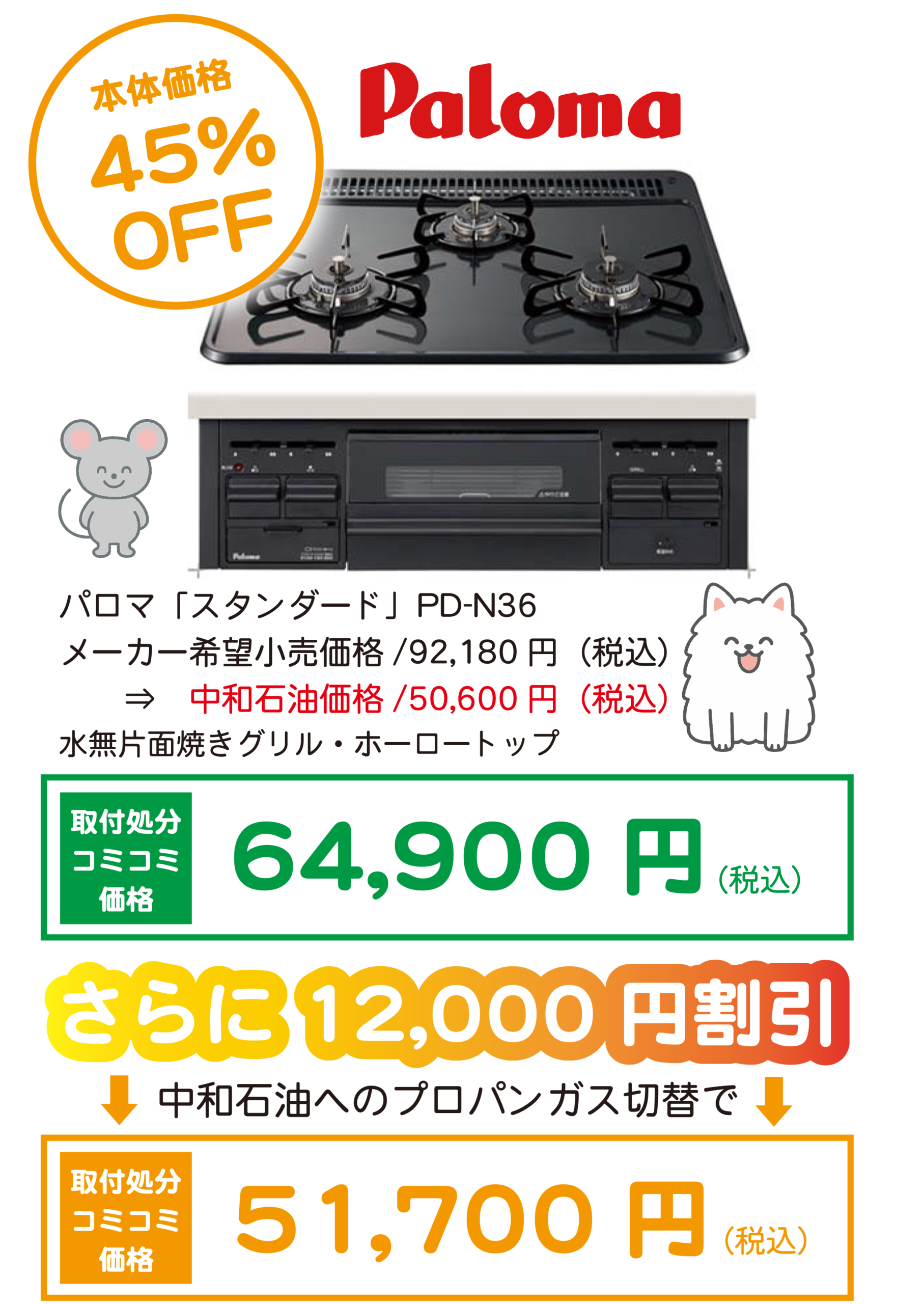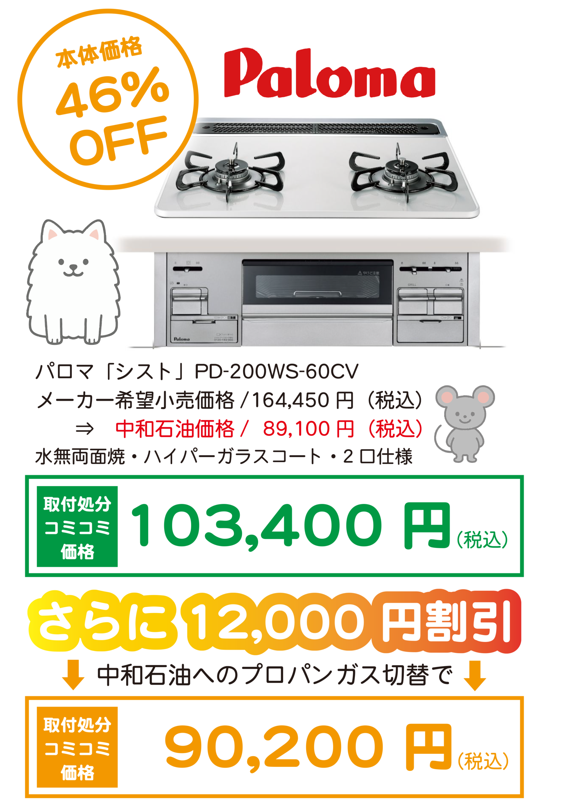 ガス種:プロパンガス・都市ガス